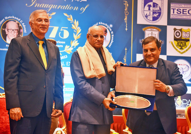Mr. Dinesh Panjwani, Secretary of HSNC Board, paid tribute to the journey of Sindhi refugees and honored the Board's Founders. He released booklet of the next five years' aspirational document of the HSNC Board.